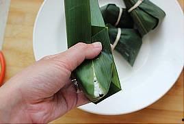 - 用粽叶将粽子包裹严实,然后用线绳扎紧。